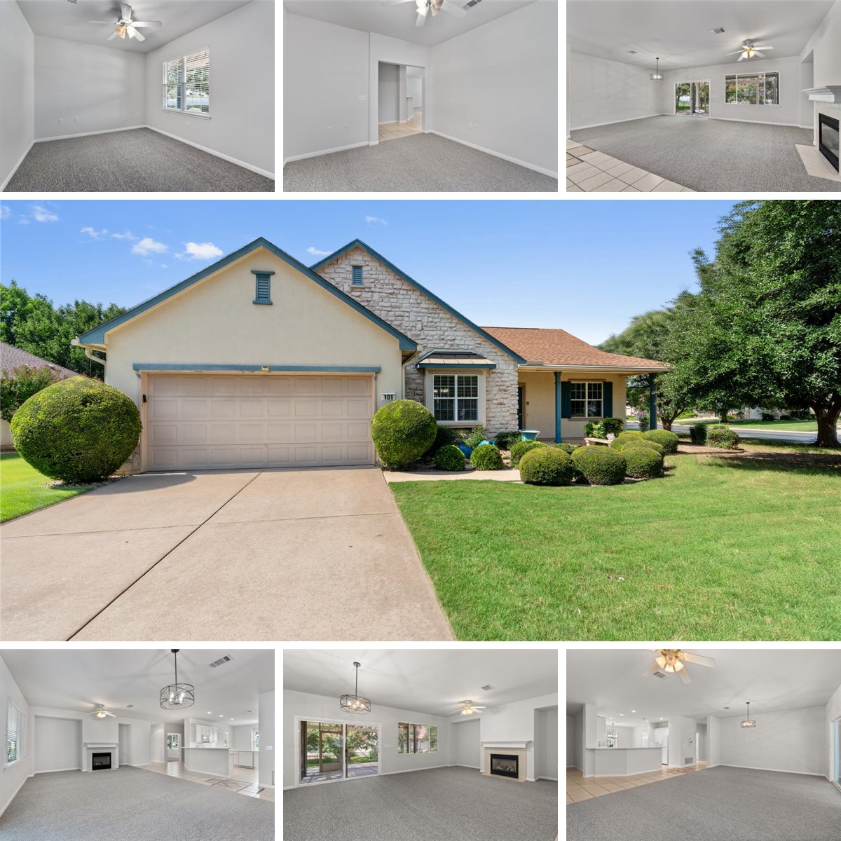 This lovingly maintained 2-bedroom, 2-bath home with a versatile flex space sits on a desirable corner lot in the heart of Sun City Texas. Inside, you’ll find tile flooring and newly updated carpet throughout, along with a spacious living area anchored by a cozy gas fireplace. The smart split-bedroom layout offers added privacy—ideal for hosting guests or enjoying a peaceful retreat. The bright, inviting kitchen features abundant windows and a charming dining nook, all flowing seamlessly into the main living and entertaining areas. Enjoy quiet mornings on the screened-in back patio or relax on the roomy front porch. Best of all, this home is just minutes from Sun City’s vibrant community center and golf course. Residents enjoy world-class amenities, including resort-style pools, fitness centers, scenic walking trails, and courts for tennis, pickleball, and bocce.