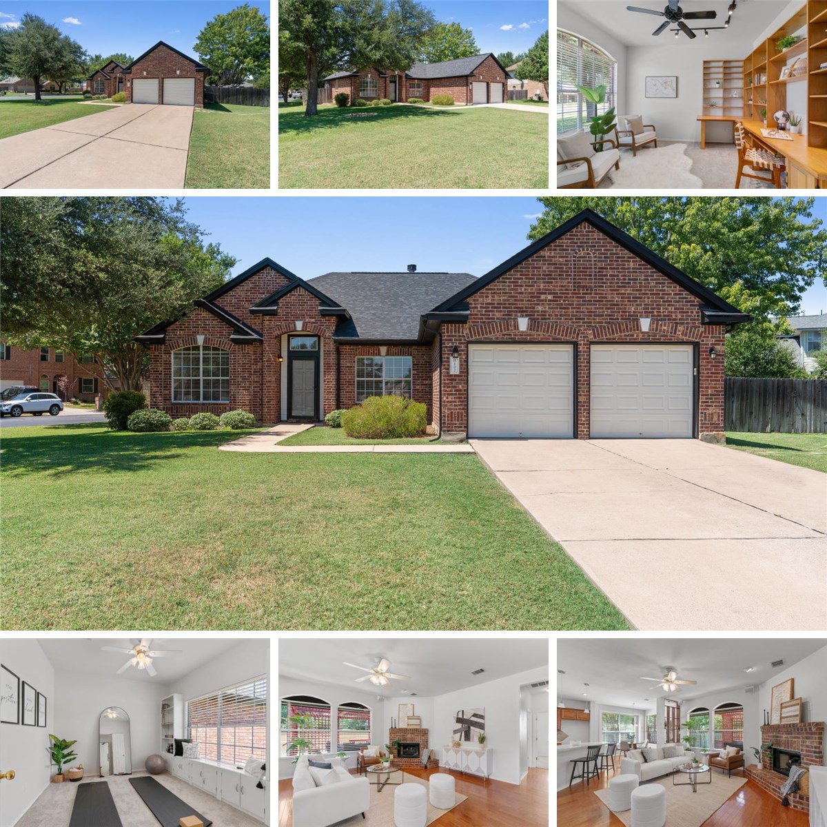 Charming single-story home on a premium cul-de-sac corner lot with an exceptional layout and covered deck. Located in the peaceful and highly desirable Churchill Farms community—just one block from the neighborhood pool—this home offers 4 spacious bedrooms, a dedicated study, a cozy brick fireplace, and a large kitchen with a center island. The expansive primary suite is large enough for a sitting area or nursery, and features oversized windows with built-in seating that overlook the backyard. Step outside to enjoy a large covered patio and deck—perfect for al fresco dining or entertaining—plus a convenient storage shed. Recent updates include new roof (August 2025), fresh paint (August 2025), and new carpet (2022, August 2025). With easy access to Toll 130 and IH-35 and just a short drive to the Historic Georgetown Square, this home offers both comfort and convenience. A must-see and a must-have!