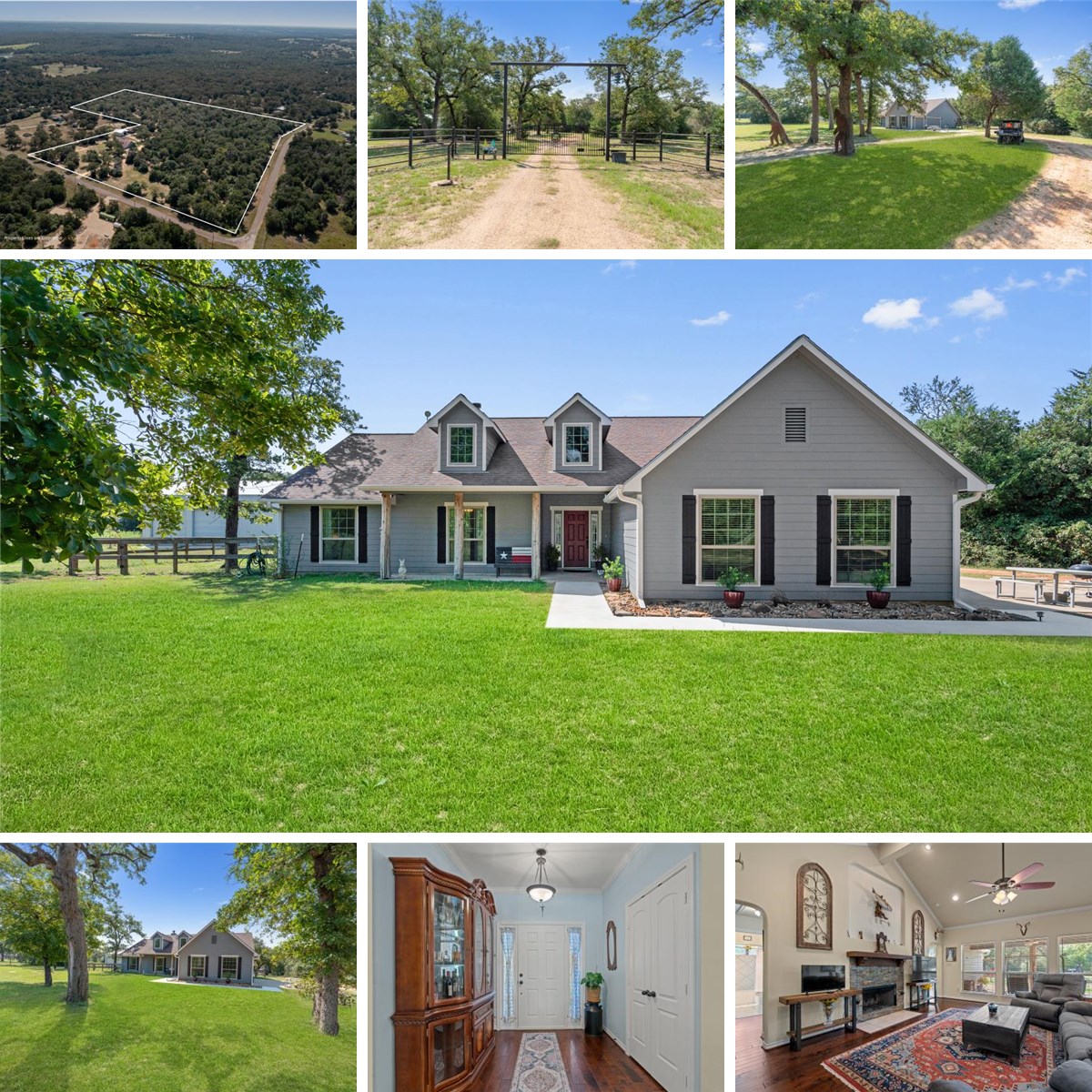 Nestled in a very private setting surrounded by thick hardwoods, this single-family, 2016 Tilson built home, presents a wonderful opportunity to own a home along with a 2 bedroom, 1 bath guesthouse! With the main home having 2.5 bathrooms and approx. 2003 sq.ft., mornings become a breeze, offering both convenience and privacy for everyone. The three-car garage provides ample space not only for vehicles but also for additional storage. The main home offers the comforts of modern living, including in-home electronic wire and water source boxes, to name a few. The guesthouse, constructed in 2024, being approx. 1008 sq. ft., could also be used as a great AirBnb, office, or Mother-ln-Law home! Extra storage space needed? There is a 20' x 11' small barn with double doors on dirt floor and a large 40' x 40' barn, on slab, with 1 entry door, 3 roll up doors, fully wired with 2 car "lean-to". This property offers privacy and peacefullness! Approx. 2/3 of property is wooded. There is a beautiful custom built entry gate with a single walk through gate, welcoming you to the property. The custom built deer stands and feeders will stay! Firepit added to enjoy for those cold nights! All within 30 minutes to Caldwell and Rockdale Bitcoin (Business) facility, and within an hour to BCS, Austin, Samsung Plant, and Tesla Facility and 2 hours to Houston! Grass is digitally imposed in most of the pictures. Groundwater is leased.