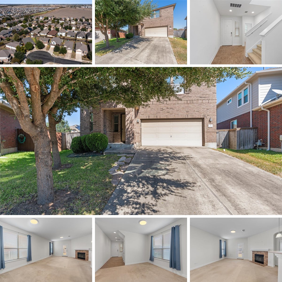 Welcome to ShadowGlen, one of Manor’s most desirable communities! This spacious two-story home sits on a quiet cul-de-sac and offers a fantastic layout with the primary bedroom and half bath downstairs, plus a bonus den or game room upstairs perfect for flexible living or a home office. The inviting living room features a cozy fireplace, ideal for relaxing evenings.
