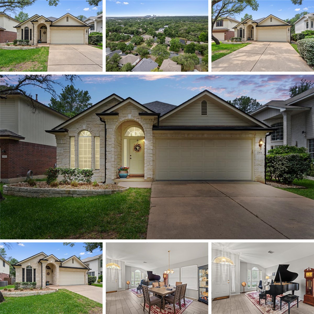 Conveniently located near Domain, IBM, Apple, TWO H-E-B stores, MetroRail, ACC, La Frontera and so much more! This well-maintained, 1-story, 1700SF home has wood-look ceramic tile throughout most of the house; a quiet, charming backyard retreat where you can watch the squirrels play, dine al fresco under the patio or under the stars. With 2 living and 2 dining areas, you have options to use any of these bonus spaces as needed: reading area, exercise area, office/study, playroom, craft area.... The oversized master BR held a full suite of furniture including a large king-sized poster bed and still had room for an exercise area by the windows overlooking the backyard. The yard has been professionally landscaped and maintained; range & microwave purchased in fall 2024.