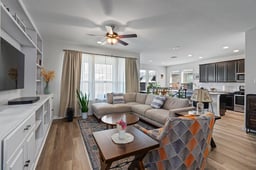 A private drive leads to this beautifully upgraded home, nestled in the peaceful and coveted Carmel West subdivision. Step through the covered front porch into a warm, light-filled entryway that opens into a spacious great room—ideal for entertaining and everyday living. Gorgeous luxury vinyl plank flooring flows throughout the downstairs, adding warmth, durability, and modern style. The open floor plan seamlessly connects the living room, dining area, and kitchen, while a stylish half bath provides convenience for guests. A versatile flex room, accented with elegant barn doors, makes a perfect home office, playroom, or creative space. Custom-built cabinetry in both the living and flex rooms adds charm, functionality, and smart storage throughout. Upstairs, engineered hardwood flooring elevates a secondary living area provides additional flexible space. The tranquil and spacious primary suite is a true retreat—bright, serene, and thoughtfully designed with a statement wall and two beautifully upgraded walk-in closets by Closets by Design. The en suite bathroom features dual vanities, a walk-in shower, and built-in shelving for extra storage. Two guest bedrooms—each with walk-in closets—share a full bath with a tub/shower combo. Additional upgrades include a laundry room with added shelving and a kitchen enhanced with storage drawers in several cabinets. Out back, enjoy a lush green yard and a covered patio perfect for relaxing or entertaining outdoors. A custom under-stair closet offers added interior storage, while the garage features built-in shelving and insulated panels for year-round comfort. This home is packed with over $45K in thoughtful upgrades and built for efficiency with energy-efficient windows, HVAC, insulation, a Tesla solar panel system with whole-house battery backup, and a water softener plus drinking filtration system. With every detail designed for comfort, sustainability, and modern living, this gem is truly move-in ready.