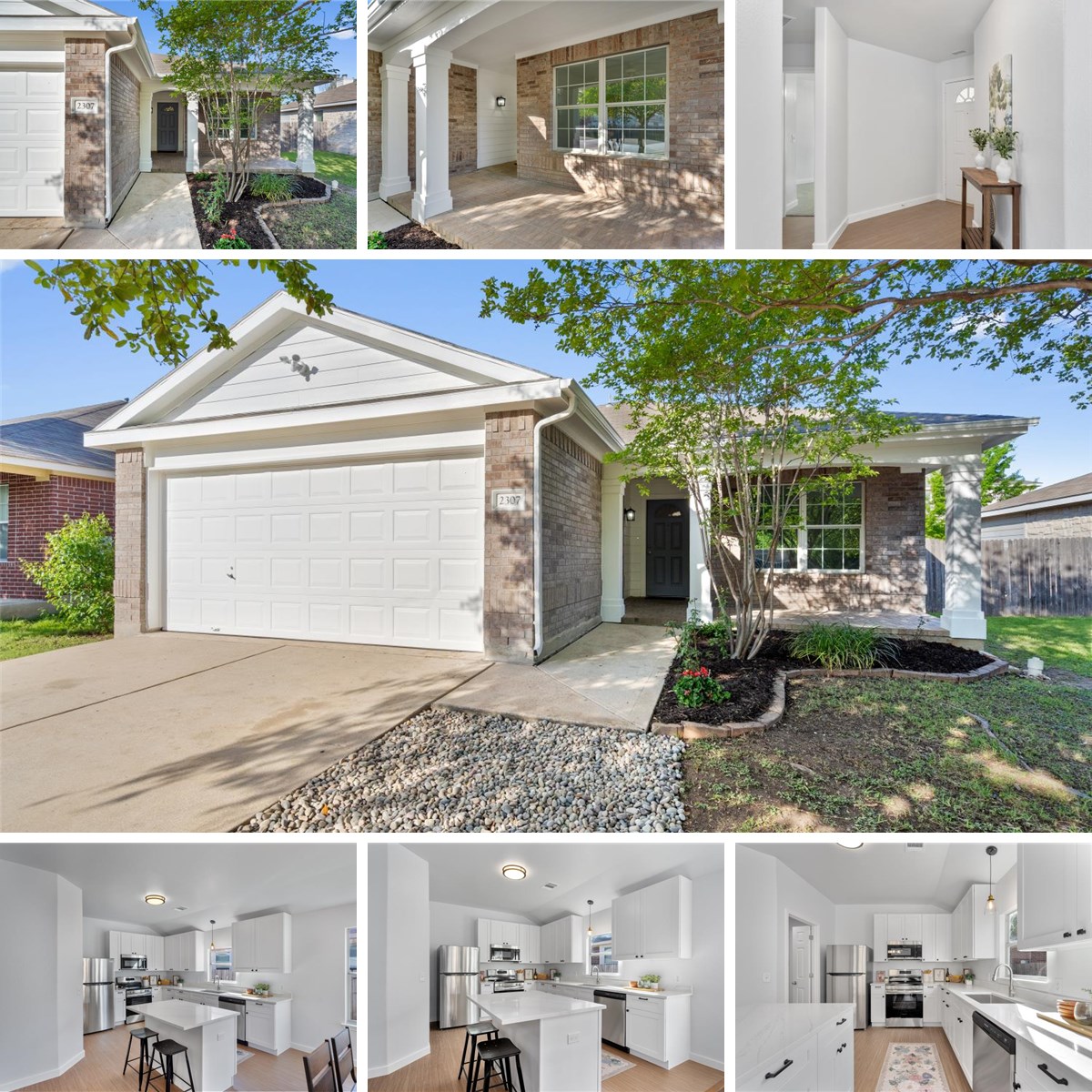 Step into modern luxury with this fully remodeled one-story home, where every detail is designed for comfort and style. Featuring 3 bedrooms and 2 bathrooms, this bright, open-concept gem feels like a brand new home from top to bottom. With over $50,000 in recent upgrades (see upgrades list) and new roof shingles to be installed before closing, this home delivers incredible value and peace of mind. The show-stopping brand new kitchen is the heart of the home, boasting shaker-style cabinets, stainless steel appliances, quartz countertops and an expansive island with eat-in seating. It flows seamlessly into the spacious dining and living areas—ideal for hosting or relaxing. A cozy brick fireplace anchors the living room, creating a warm, inviting space. The private primary suite is a serene retreat with backyard views and a spa-inspired ensuite featuring a stunning tiled walk-in shower, glass enclosure, dual quartz vanities, and modern fixtures. Two additional bedrooms, both with walk-in closets, are thoughtfully situated on the opposite side of the home for maximum privacy, along with a beautifully updated second bathroom. Additional features include a dedicated laundry room with bonus pantry space, and a backyard patio slab perfect for dining or lounging, with a flat yard space ideal for play. As a resident, you’ll also enjoy access to HOA amenities including a swimming pool, basketball court, and shaded playground—perfect for family fun and weekend relaxation.