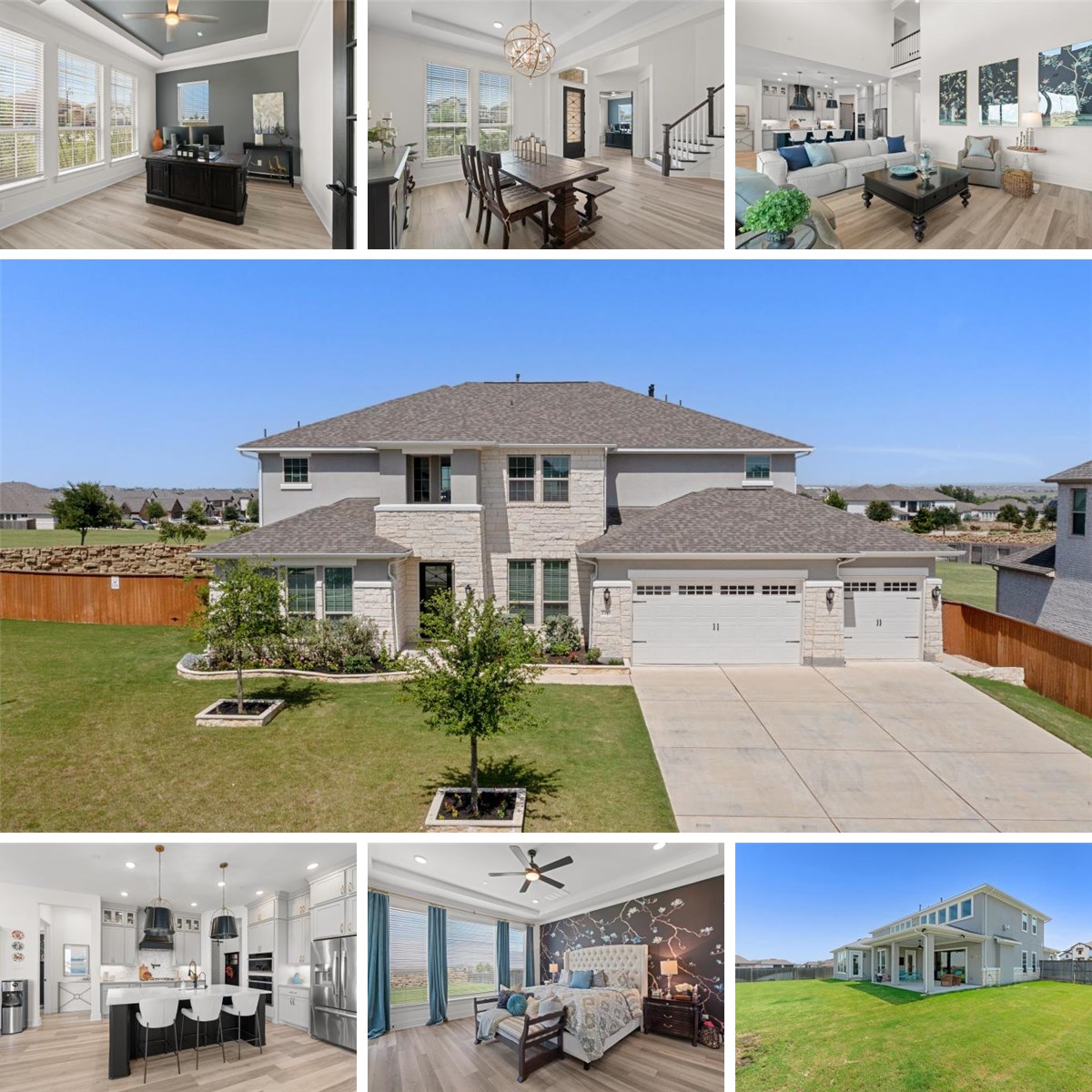Welcome to 2353 Giona Place – a spacious and elegant 5-bedroom, 4.5-bath home with thoughtful upgrades throughout, backing to a serene greenbelt.** Inside, you’ll find soaring ceilings, expansive windows, and luxury vinyl plank flooring that flows seamlessly through the main living areas. The open-concept living room features a dramatic floor-to-ceiling fireplace and views of the private backyard. The chef’s kitchen includes quartz countertops, stainless steel appliances, a large island with bar seating, a tile backsplash, walk-in pantry, and custom cabinetry with pull-out drawers. A formal dining room offers the perfect space for entertaining. The main-floor primary suite serves as a relaxing retreat, complete with dual vanities, a soaking tub, separate shower, and a spacious walk-in closet. Also on the main level is a guest suite with a private ensuite bath—ideal for guests or multigenerational living. Upstairs you’ll find a media room and three generously sized bedrooms, all with walk-in closets—one with a private ensuite and two sharing a Jack-and-Jill bath. **The 4-car garage is a true standout feature**—fully finished with epoxy flooring, a mini split A/C system, overhead storage racks, and a high-end water softener system. Located on a quiet street with a fully fenced backyard and no rear neighbors, this home blends comfort, functionality, and refined style in a prime location.