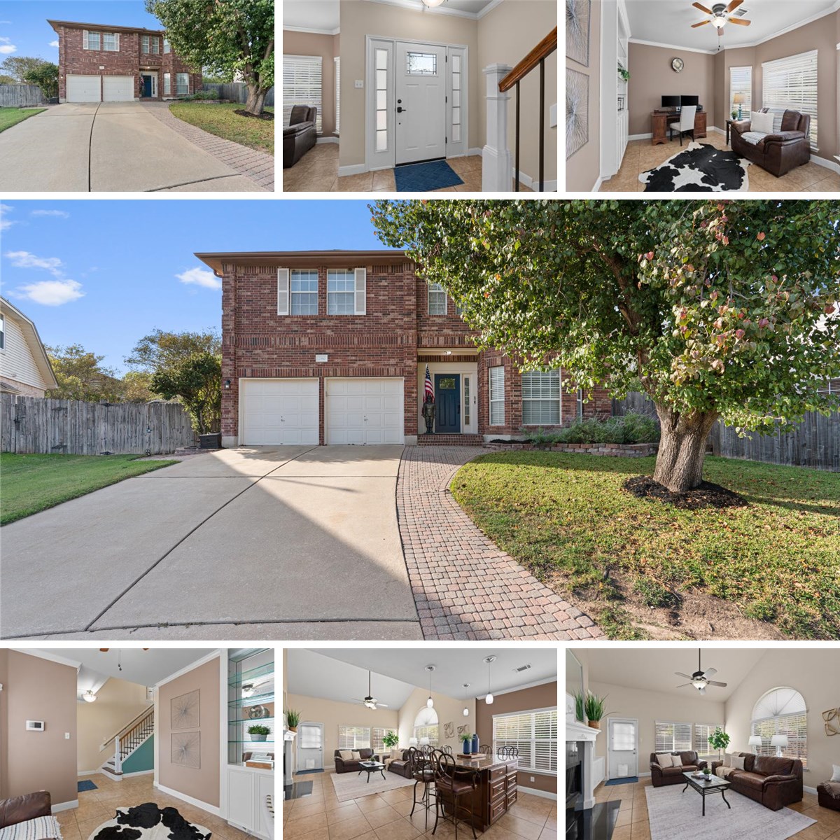 Welcome to this beautifully updated and meticulously maintained 4-bedroom, 2.5-bath home tucked away on a quiet cul-de-sac in the highly coveted Round Rock Ranch community. Offering an impressive 2,791 sq ft of living space, this home features a thoughtful layout with the primary bedroom conveniently located on the main level, along with a dedicated office or flex room ideal for remote work or study. Step inside to an inviting family room boasting soaring ceilings, rich wood flooring, custom built-ins, and a cozy fireplace—the perfect backdrop for gatherings and everyday living. The spacious kitchen is designed for both function and style, complete with a large center island, breakfast bar, gas cooktop, built-in oven, and an upgraded LG dishwasher added in 2023. Upstairs, three generous bedrooms are complemented by a large second living area, offering the perfect space for a game room, media room, or additional lounge. This home stands out with a collection of major recent upgrades rarely found together at this price point, including solar panels installed in 2025 for increased energy efficiency, a new larger AC unit added in 2025 for enhanced cooling, and a new roof and gutters installed in 2024 to provide long-term peace of mind. The property also features a commercial-grade Hunter/Hydrawise irrigation system installed in 2024 for smart and efficient watering, as well as a 17' x 16' concrete and wood storage structure ideal for tools, hobbies, or seasonal storage. Outside, enjoy a private backyard retreat shaded by mature trees and supported by an automatic sprinkler system, offering ample space to relax or play. Located in Round Rock ISD and just minutes from major employers, retail, dining, and commuter routes, this home delivers the perfect blend of comfort, convenience, and exceptional upgrades. Truly move-in ready and designed to impress.