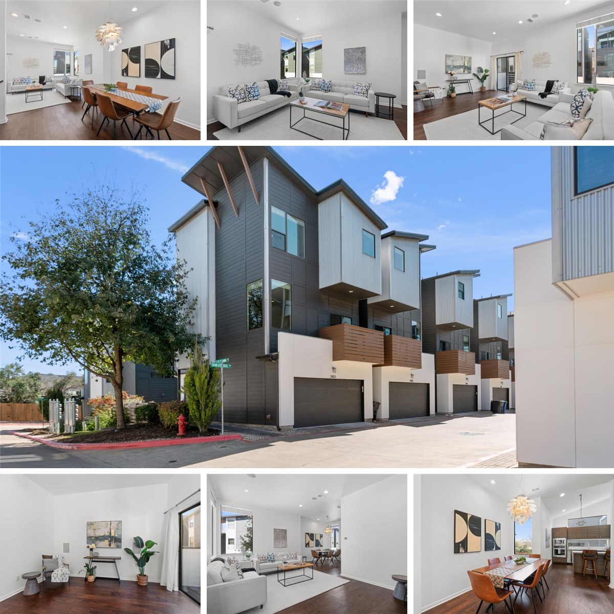 **Ultra Chic, Sleek & Stylish**Introducing this stunning, modern, fully detached corner unit townhome located in the highly sought after 78704 zip code. Positioned in a private gated community, this contemporary 2012 stand alone home has been impeccably maintained and updated over the years, featuring unique custom lighting, beautiful wood and subway-tiled floors and a whole house custom speaker system. The open concept living with formal dining area, high ceilings and abundance of large windows create a bright and sophisticated atmosphere. The modern kitchen design with clean Euro finishes, stainless steel appliances, sleek countertops and a generous island with breakfast bar, is an entertainer's delight. The spacious primary suite, located on the 3rd floor, features vaulted ceilings and an en suite spa-like bathroom with a garden tub, walk-in shower, duel vanities, and an expansive walk-in closet with exceptional built-in shelving. Also on the 3rd floor is a versatile second living area offering impressive views of St Edwards University---ideal for a private home office, cozy den or personal gym. The 1st floor bedroom with en suite bath and private access to the back yard, is well suited for guest quarters, a roommate or an in-law suite. The 2 car garage, with new epoxy flooring, ensures parking with comfort and ease while offering plenty of storage space. Step outside to the thoughtfully designed private yard and patio, perfect for enjoying Austin's outdoor lifestyle. Located in the heart of a vibrant neighborhood filled with amazing amenities, this home offers easy access to the best of 78704---walk, bike or jog to all the hot spots and attractions the city has to offer! **Buyer to independently verify all info including but not limited to square footage, taxes, schools, restrictions, year built, HOA dues etc**