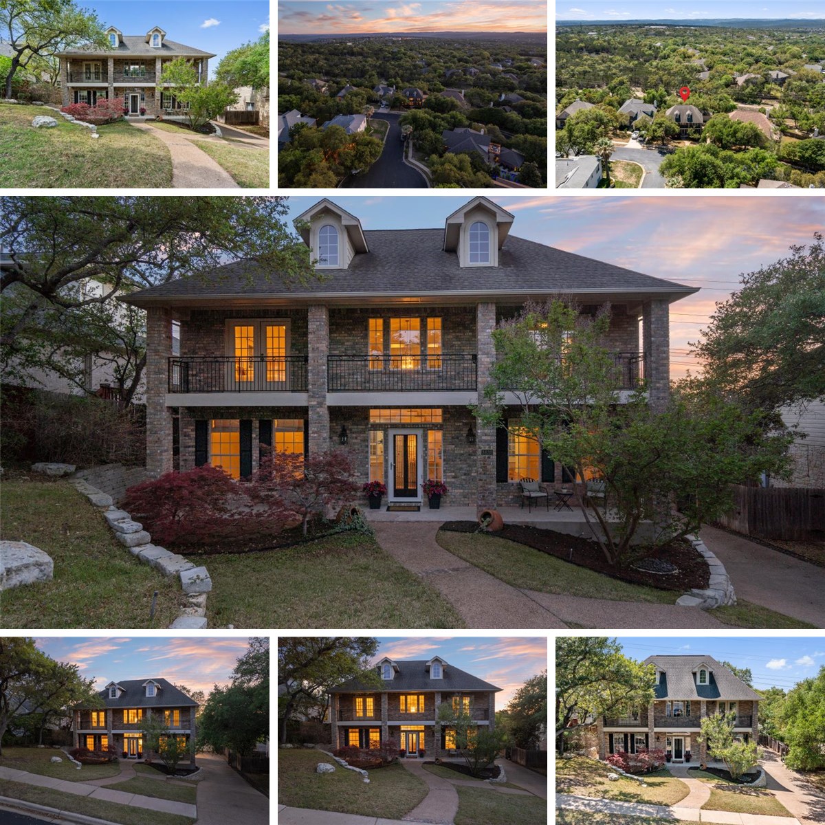 Located in Steiner Ranch, this 4-bedroom, 3-bathroom single-family home offers a layout with a main-floor guest suite and direct access to the neighborhood's extensive trail system. Steiner Ranch is widely recognized for its 3 amenity areas, Lake Travis proximity and highly-rated Leander ISD schools. This two-story residence stands out immediately with its large front porch and walk-out balcony on the upper level. Inside the foyer, the ceiling reaches the full height of the second story, leading past a formal dining area and library into the main living spaces. A fourth bedroom is located just off the main hallway and includes an attached full ensuite bathroom. The back of the house is dedicated to an open kitchen and living room. In the kitchen, the storage is significant, featuring a center island with built-in cabinetry, a dedicated desk, a large walk-in pantry., granite countertops, under-cabinet lighting and a stainless gas cooktop and double ovens. The living room is centered around a stone fireplace with a wood mantel, flanked by custom built-in shelving that provides plenty of room for books and media. Large windows here look out toward the greenbelt. Most of the interior has been refreshed with a recent coat of paint. Upstairs, a game room acts as a second living area. The primary suite and one of the secondary bedrooms both open onto the covered balcony The primary bathroom features separate vanities, a jetted tub, and a step-in shower, while both upstairs bathrooms include penny tile and granite counters. The backyard is one of the most private spots in Steiner Ranch, as it backs directly to a protected greenbelt. A gate in the rear fence provides immediate access to the hiking trails. Outside, a large patio with a pergola provides a shaded spot to sit among the mature trees. The home includes a detached two-car garage and is located 17 miles from Downtown Austin and 28 miles from the ABIA, offering a quiet lifestyle with access to the city via RM 620.