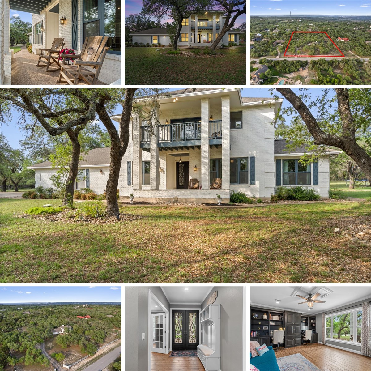 Incredible rare find in the Saddletree Ranch neighborhood on an oversized, double lot totaling 3.3 private acres with beautiful trees throughout the property for enhanced privacy and a true hill country setting. This updated two-story home offers 4 beds / 2 baths in 2850 SF plus a two dedicated, separate offices. The majority of the living space is located on the main level with an open kitchen / dining / living room, plus 3 bedrooms, a bathroom, a large enclosed office with built-ins and laundry/mud room. Upstairs is an oversize primary bedroom and bathroom with bonus room attached to the primary bedroom perfect for a secondary office space, gym, or nursery. You can also enjoy your treetop views overlooking your expansive front yard from a private upper balcony extending from the primary room as well. The home has been updated in the last several years with updated flooring, kitchen, and bathrooms (no carpet throughout!). Enjoy all the Hill Country has to offer on your very own 3.3 acres - fully fenced and private gated entrance. Plenty of room for a pool in the backyard with ample room for entertainment and sports - firepit, dining area, garden, and even a batting cage. The back portion of the property has been left in it's natural state for enhanced privacy and tree coverage. Saddletree Ranch is an ideal location for those looking for a neighborhood feel with the privacy of acreage at home with community amenities including a large park, baseball fields, sport courts, tennis and pickleball courts and playground for the kids.