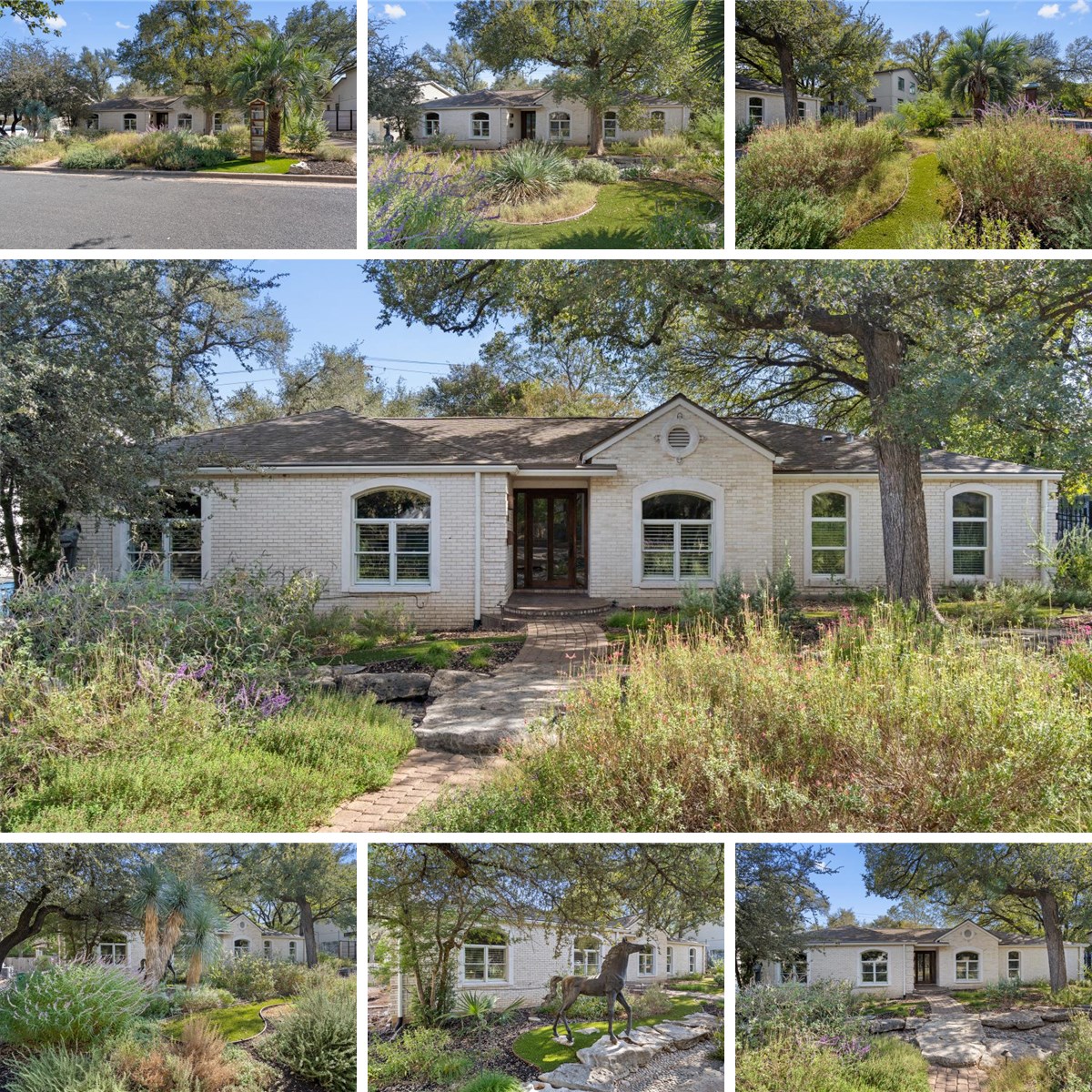 This 3-bedroom, 2-bath single-story home sits in the peaceful Highland Oaks community, where streets are lined with mature trees and the setting feels tucked away yet close to everything Austin offers. Inside, the layout is thoughtful and flexible with both formal living and dining rooms as well as an open main living area that combines the family room, kitchen, and casual dining. The kitchen is designed to impress with Elan cabinets reaching the ceiling, two hidden appliance garages, granite counters, and smart storage solutions that make the space both functional and uncluttered. The primary suite includes its own ensuite bath, while two secondary bedrooms offer versatility, one featuring a queen-size Murphy bed that folds neatly into built-in shelving. Storage is a theme throughout the home, with built-ins and custom cabinetry that keep everything tidy while adding character. But what makes this property truly unforgettable is its outdoor living. The front yard is its own showcase, with native landscaping, rock pathways, and artistic details that make it stand out from the rest. Step into the backyard and you’ll find multiple outdoor living spaces, including a covered patio and shady sitting areas that invite you to linger. And then there’s the mural, stretching across the back yard and blending seamlessly with the trees above, it creates the illusion of your own private nature preserve. Bronze herons peek over stonework, fountains trickle, and the garden’s layered design makes the yard feel magical, like a living work of art. This home is not just a place to live but an experience— unique, artistic, and designed to surprise at every turn. Walk to award-winning Doss Elem. and minutes from parks, trails, Great Hills CC, UT, the Tech Corridor, and Lake Austin. With quick access to Mopac, the best of Austin is always close by. A home as unique as Austin itself; It’s magical and completely unforgettable!