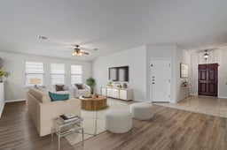 Charming, move-in-ready single-level home in the popular Villages at Berry Creek subdivision. Step inside to a bright, open living area with high ceilings and abundant natural light, creating a welcoming space for everyday living and entertaining. The living room flows seamlessly into the eat-in kitchen, which features a breakfast bar and overlooks the family room, making it easy to stay connected while cooking or hosting. The spacious primary suite is tucked away for privacy and features large windows that fill the room with natural light, a ceiling fan, and French doors leading into the en suite bathroom. The primary bath offers a soaking garden tub, separate shower, dual vanity, and a generous walk-in closet. Down the hall, the secondary bedrooms are comfortably sized—one with a ceiling fan and large closet, and the third featuring a walk-in closet and a front-facing window that brings in soft natural light. A full secondary bathroom is conveniently located between the guest rooms, and has a shower tub combo. Outside, enjoy a peaceful, fenced backyard with a patio and pergola complete with curtains, providing shade for relaxing or entertaining. The oversized garage offers additional space for storage, and the front yard is enhanced by two mature trees that add curb appeal. Recent updates include fresh interior paint, new vinyl LVP flooring in the living area and primary bedroom, new carpet in both secondary bedrooms (installed 11/25), and a recently installed microwave (11/25). A home pre-inspection has been completed, and a survey is available to help make this listing truly ready to sell. Several items identified in the inspection report have already been addressed or are currently underway. Please reach out to the listing agent for the most current documentation.
