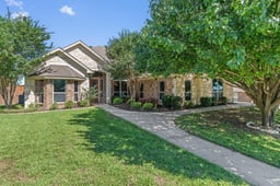 Step into a home where warmth, character, and effortless living come together in a space designed to be both inviting and unforgettable. Custom-built and thoughtfully designed, this single-story home blends open-concept living, Tuscan-inspired charm, and indoor-outdoor entertaining at its finest. Situated on nearly a third of an acre, this 2,794 sq ft home offers 4 bedrooms, 3 full bathrooms, and a seamless layout filled with natural light. Large windows, recessed lighting, crown molding, and built-in speakers create a warm and inviting atmosphere throughout. At the heart of the home is a Tuscan-style kitchen that transforms everyday cooking into a rich, inviting experience, featuring brick accents, custom lighting, and abundant cabinet and counter space—perfect for gathering and entertaining. The living area is anchored by a cozy fireplace, while the formal dining space offers an ideal setting for hosting. The primary suite is a private retreat with a beautiful tray ceiling, backyard access, and a spa-like bathroom featuring a large walk-in shower and custom-built closet. Three additional bedrooms and two full bathrooms provide flexibility for family, guests, or a home office. Step outside to an extended covered patio with a built-in outdoor kitchen and grill—perfect for enjoying Texas evenings. The spacious backyard with mature trees offers privacy and room to relax or entertain. Additional highlights include a 3-car garage with natural light, a spacious laundry room with sink and storage, and no carpet throughout for a clean, modern feel. This home offers the perfect balance of comfort, character, and functionality—all in one beautifully designed space.
