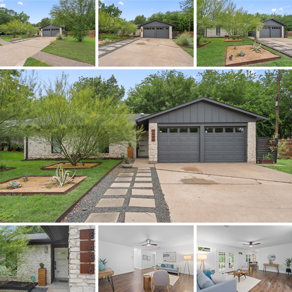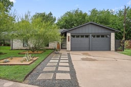 Set on a third-acre lot in North Austin, this single-level mid-century modern home brings together modern updates, real character, and a backyard that feels like a secret garden. The curb appeal is polished and clean, with stone accents, dark exterior details, and a landscaped front approach that gives the home a cool, understated presence. Inside, wide-plank wood flooring, crisp white walls, updated lighting, and natural light keep the spaces feeling bright, open, and calm. The main living area flows easily into the dining area and updated kitchen, where quartz countertops, white cabinetry, subway tile backsplash, SS appliances, and a breakfast nook with backyard views keep things fresh and functional. French doors draw the eye straight to the covered patio, making the outdoor space feel connected from the start. The primary suite includes its own ensuite bath and walk-in closet, while two secondary bedrooms and a full bath offer flexibility for guests, work, or hobbies. Out back, the yard quietly steals the show. The yard is not just big, it has layers. A covered patio sits just off the living area, creating an easy place for morning coffee or evening dinners. Beyond that, there is a cowboy pool, gravel lounge areas, a screened gazebo tucked into the greenery, open lawn, mature trees, and quieter shaded corners that make the whole space feel relaxed and a little enchanted. It is the kind of backyard that can handle friends on a Saturday, a hammock kind of afternoon. The location adds even more appeal, with quick access to Crestview, Walnut Creek Park, The Domain, Q2 Stadium, major roads, dining, trails, and everyday conveniences. With the City’s adopted concept plan for Jamestown Park nearby, including planned neighborhood access toward Bangor Bend, there is even more green-space appeal on the horizon. Fresh inside, soulful outside, and connected to some of North Austin’s best spots, this home has a little more story than the average remodel.